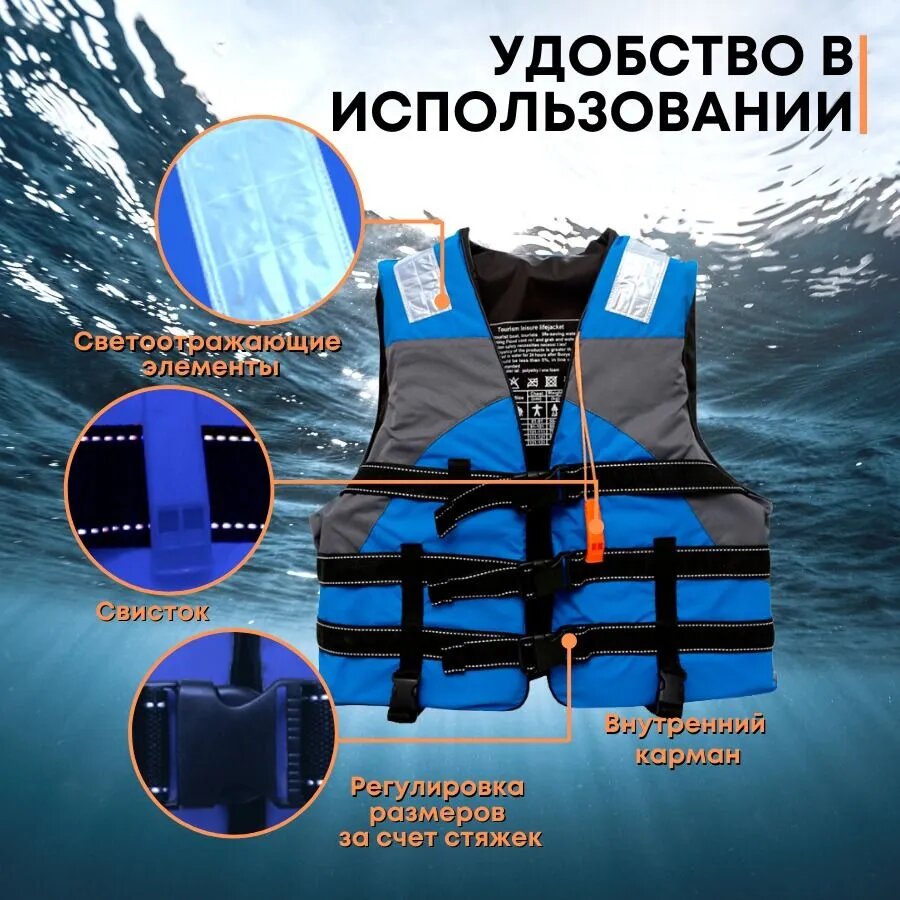 Жилет спасательный синий Coolsurf/Спасательный жилет для взрослых до 110кг/Жилет для рыбалки/Жилет спасательный/Жилет спасательный для лодки интересное: