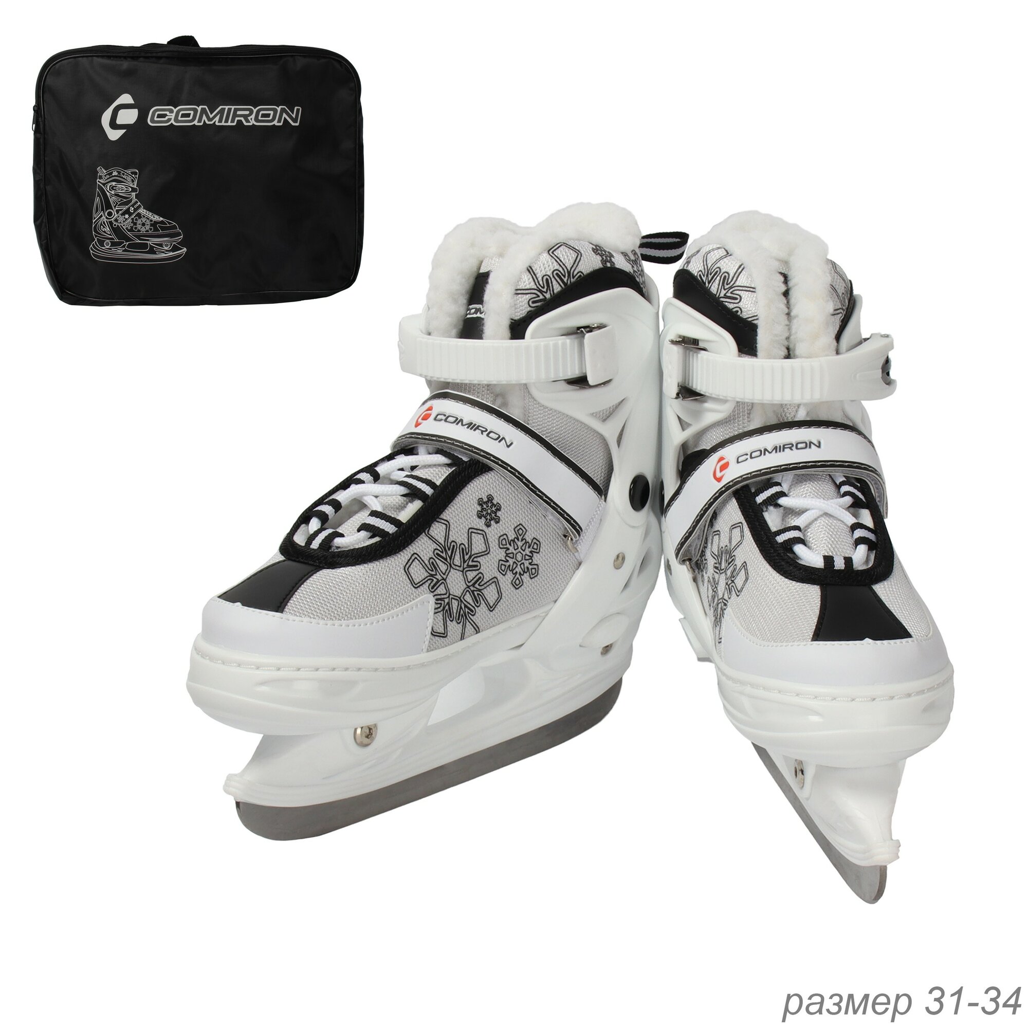 Коньки ледовые раздвижные COMIRON / S / 31-34 / чёрные интересное: