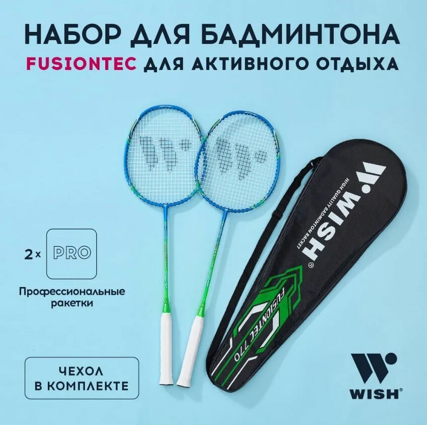 Набор для бадминтона Fusiontec 770K, 2 ракетки, синий/зеленый интересное:
