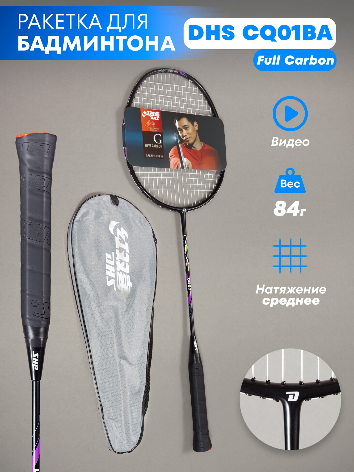 Профессиональная ракетка для бадминтона DHS CQ01BA интересное: