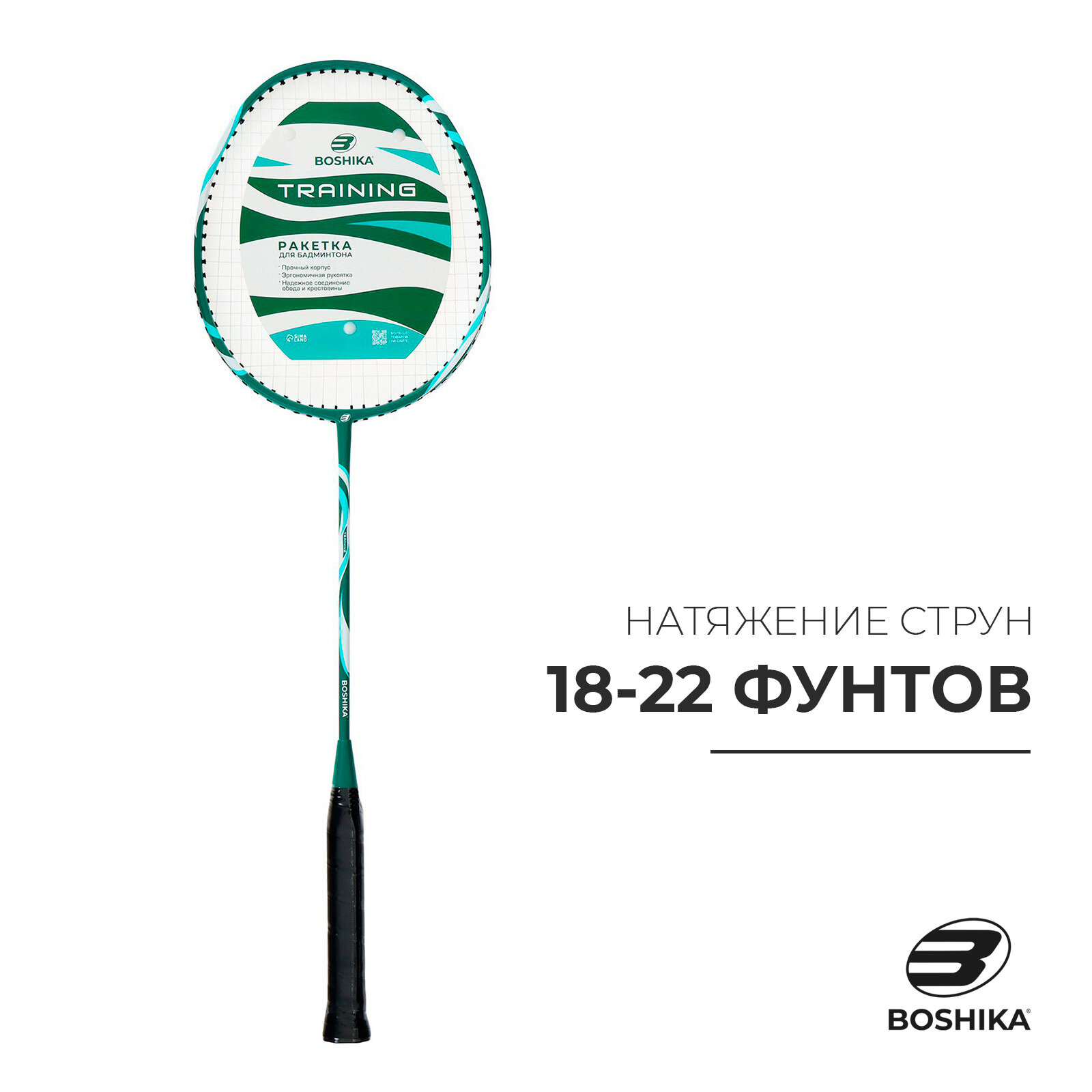 Ракетка для бадминтона BOSHIKA TRAINING, алюминий, стеклопластик, в чехле интересное: