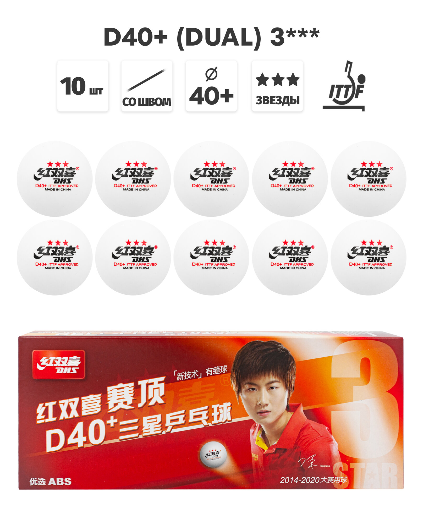 Мяч для настольного тенниса DHS WTT DJ40+ , белый, 3зв Original