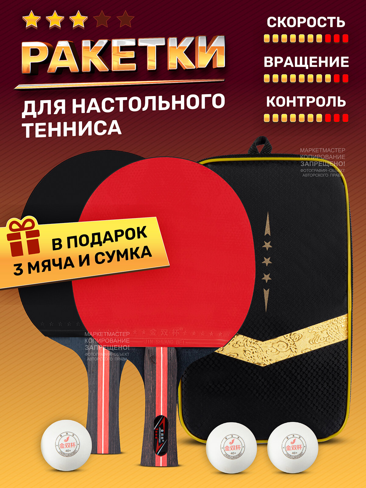 Набор для настольного тенниса ТМ CR, ракетки 5*, 3 шарика, в сумке, JB1000470