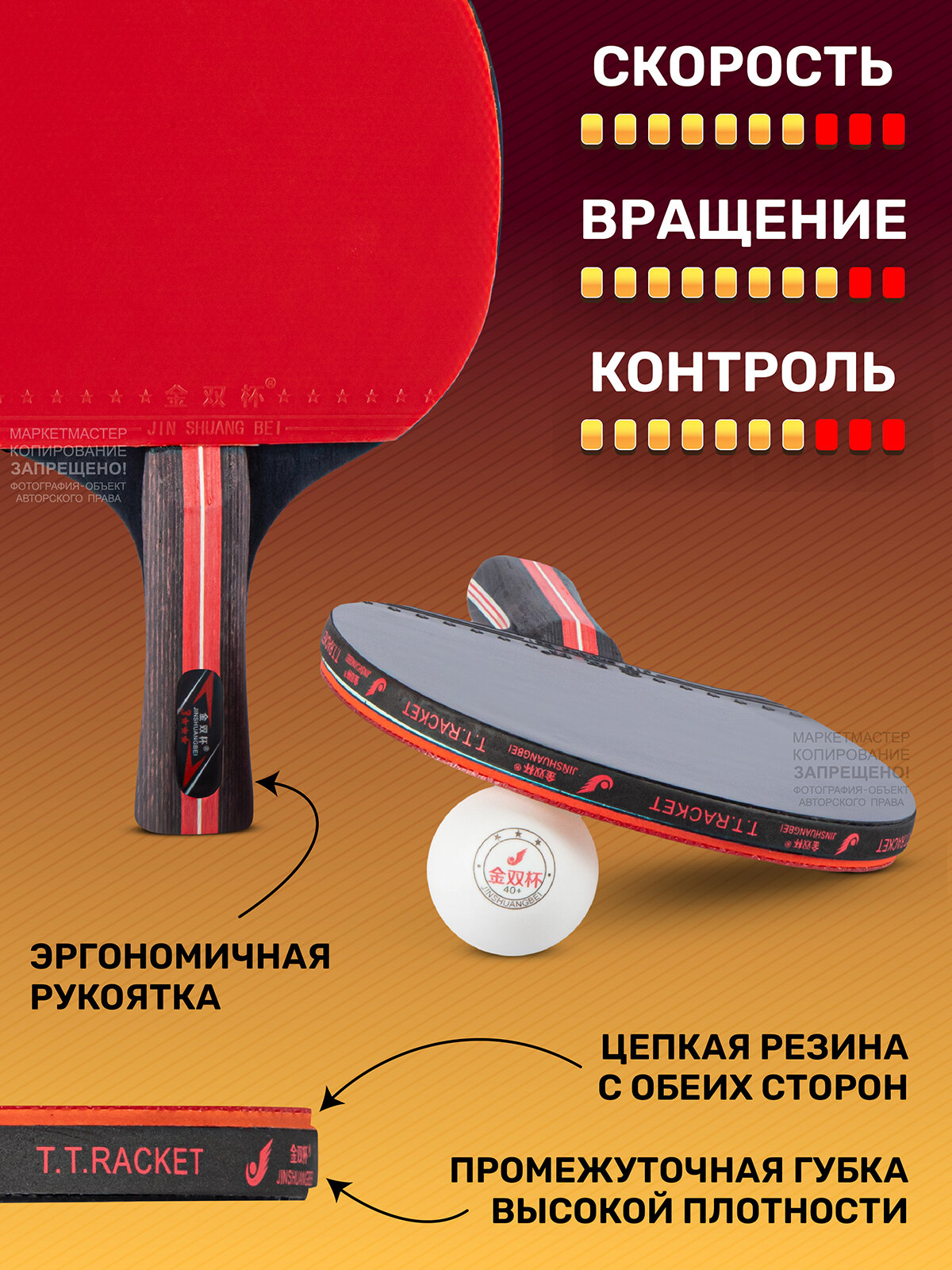 Набор для настольного тенниса ТМ CR, ракетки 5*, 3 шарика, в сумке, JB1000474