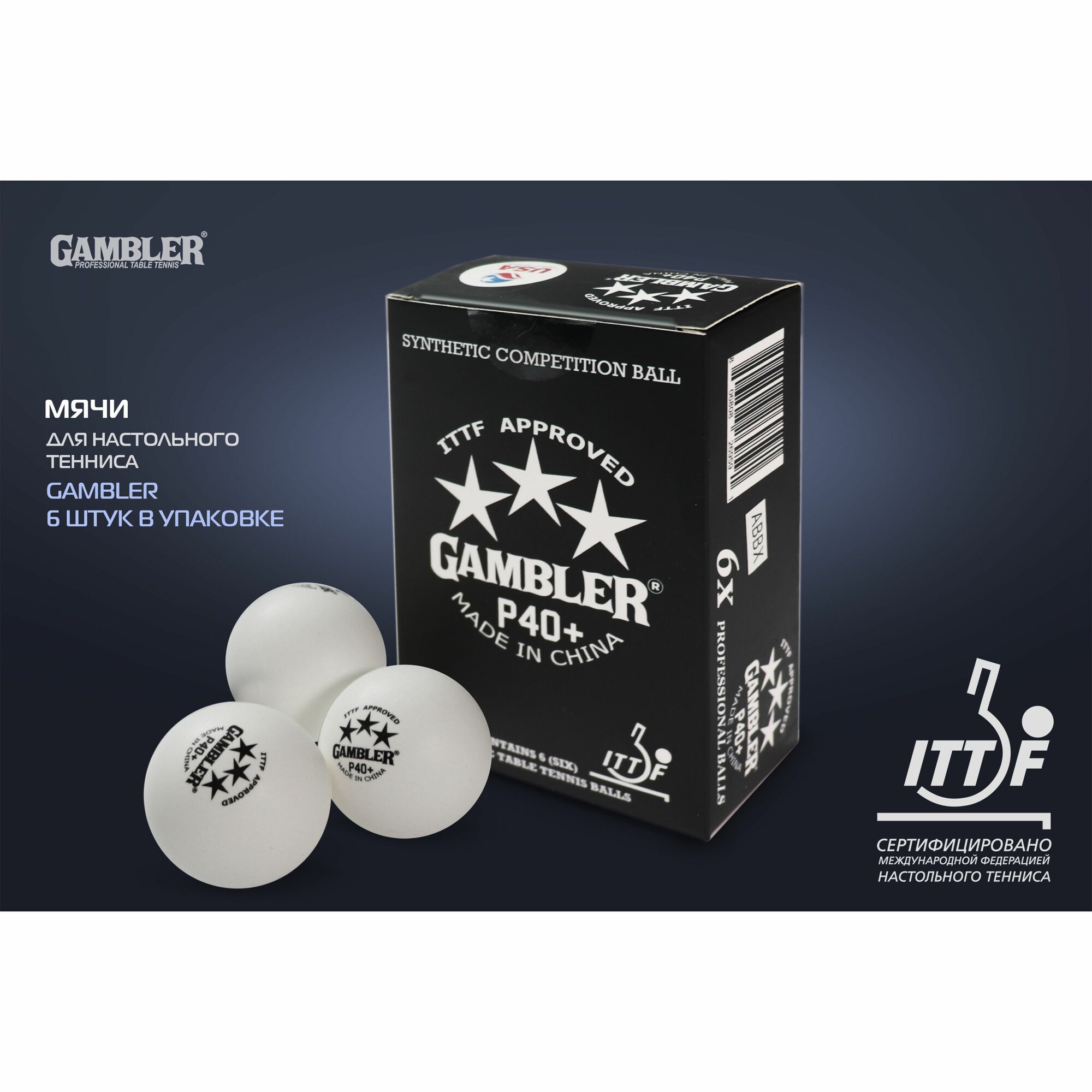 Купить Теннисные мячи Gambler p40+ ball, 6 шт.