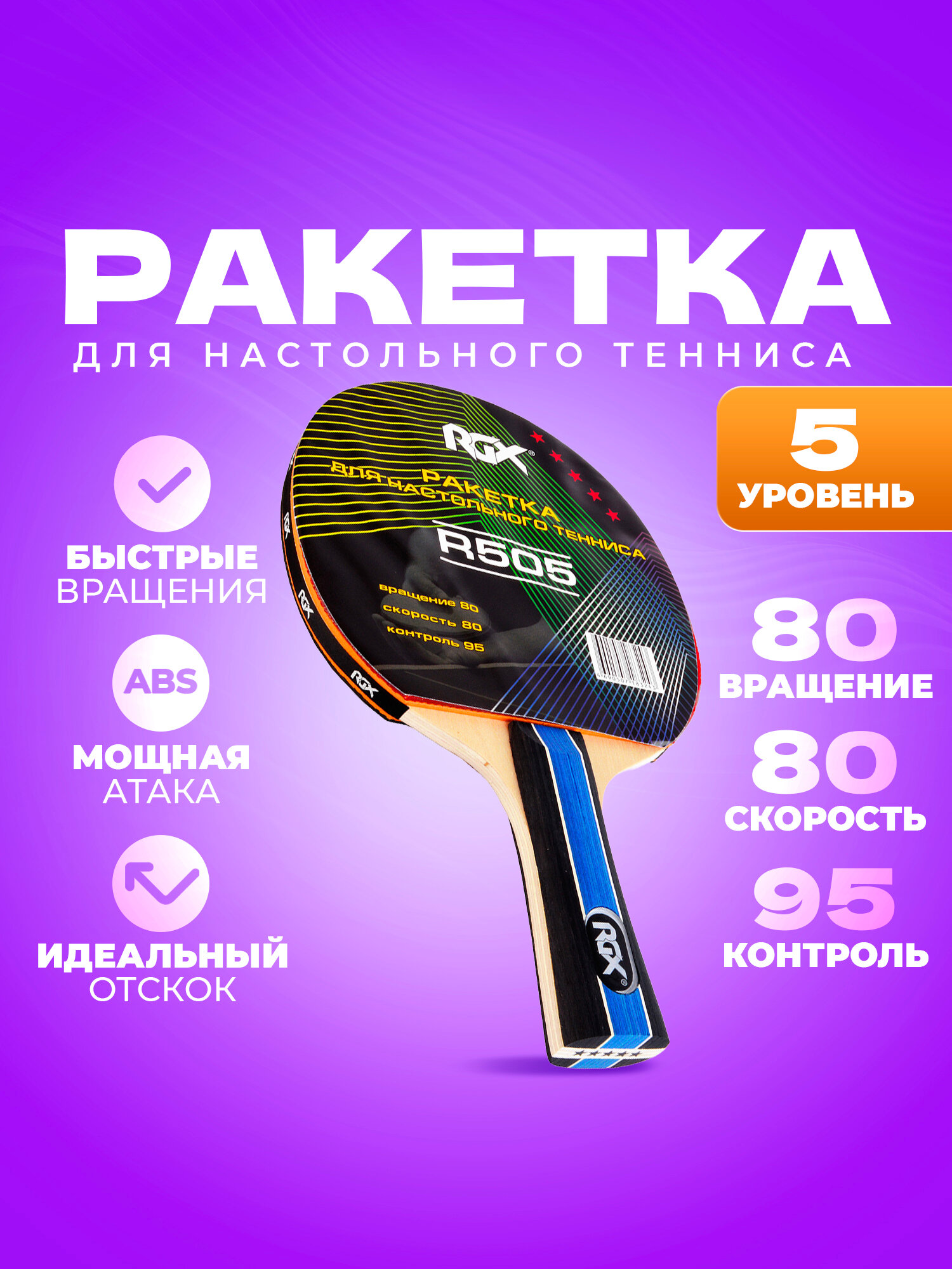 Ракетка для настольного тенниса, RGX R504, 4 звезды, толщина губки 2 мм, 5-слойная фанера