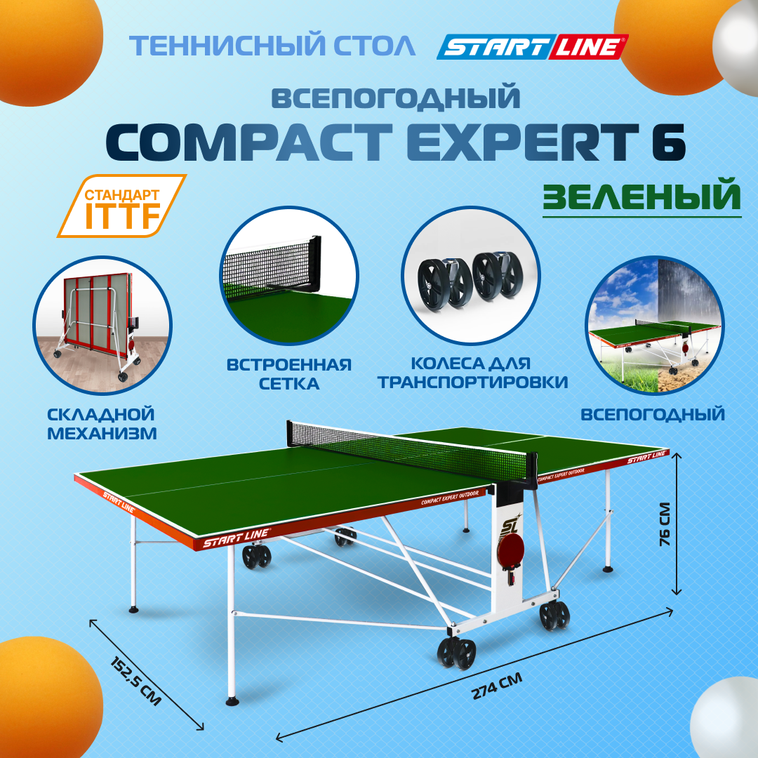 Теннисный стол всепогодный, для улицы, дачи Compact Expert Outdoor 6 зеленый профессиональный, складной, с встроенной сеткой и колесами интересное: