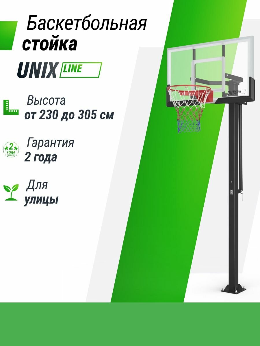 Баскетбольная стойка стационарная UNIX Line B-Stand-TG 54"x32" R45 H230-305 см