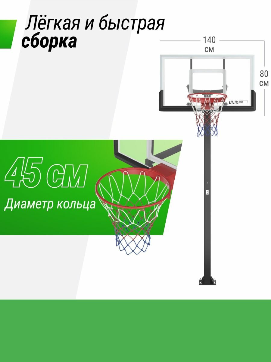 СохранитьБаскетбольная стойка стационарная UNIX Line B-Stand-PC 54"x32" R45 H230-305 см интересное:
