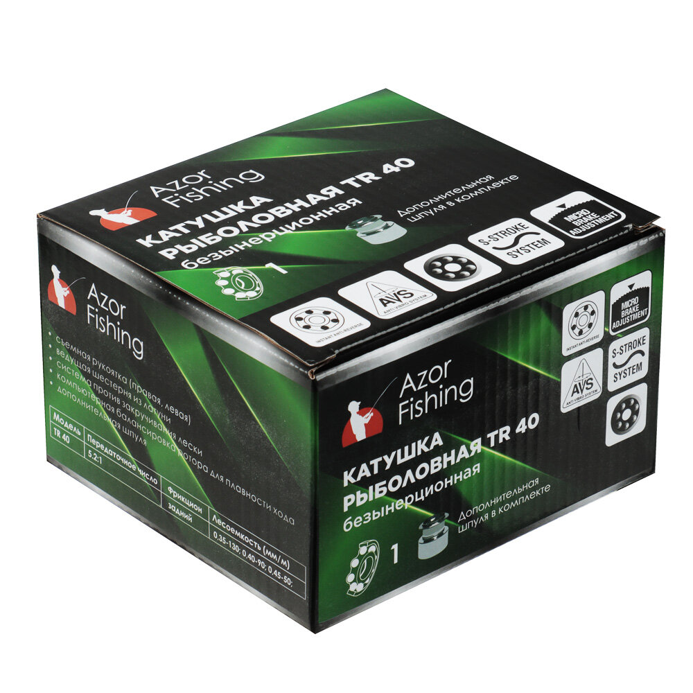 AZOR FISHING Катушка безынерционная с задним фрикционом "Тур" TR-40, 1п.п, 2 шпули: пластик, 2 штуки интересное: