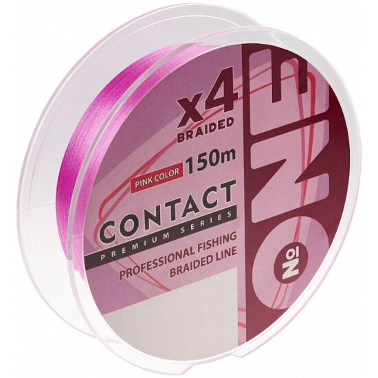 Плетеный шнур Number ONE Contact 4X-150 pink - разрывная нагрузка 2.1 кг., диаметр #0.4 0.104 мм.