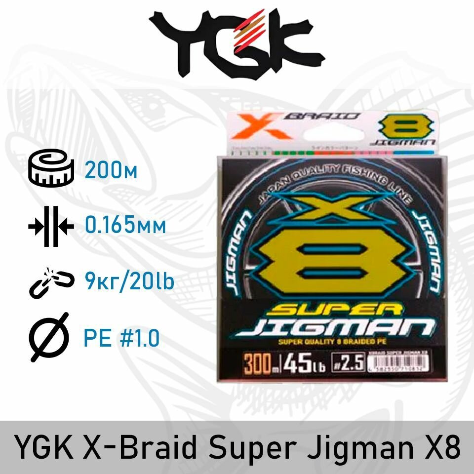 YGK Леска плетеная (шнур) YGK X-Braid SUPER JIGMAN X4 200м (YGK107274 (200 м 0,16мм) 1.0 18lb)