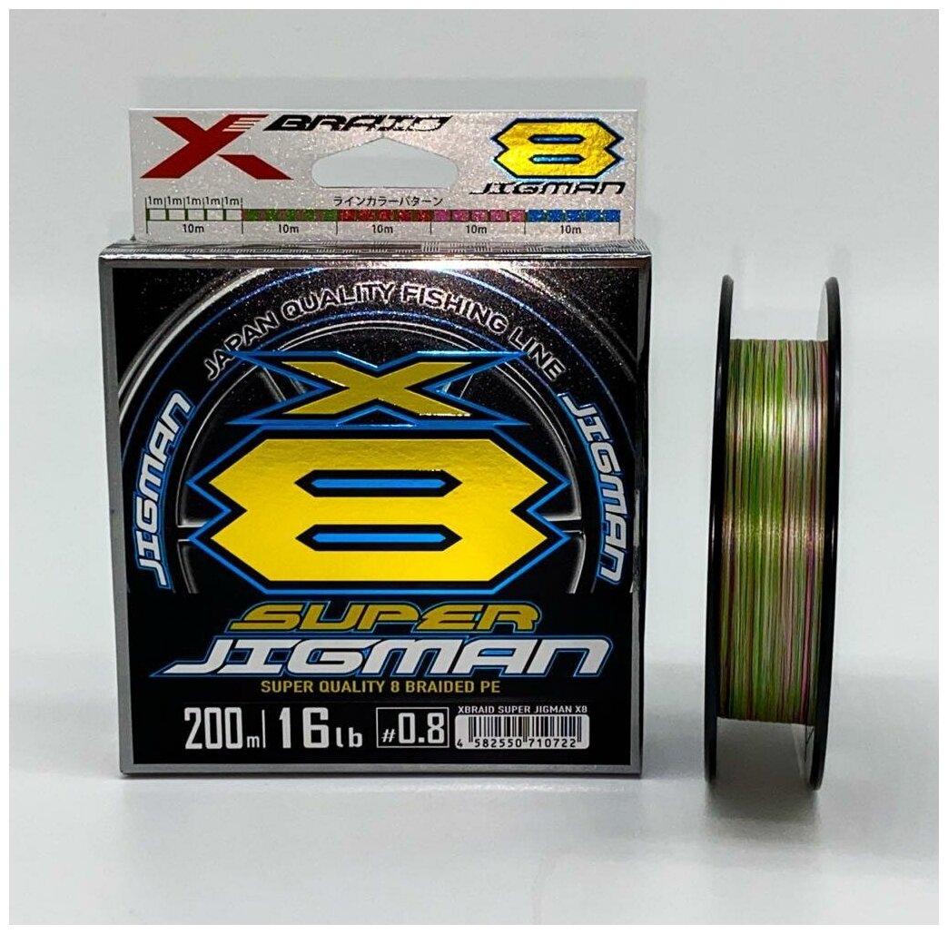 Плетеный шнур YGK X-BRAID SUPER JIGMAN PE X8 200m #0.8 (16lb/7.2кг/0.148mm)