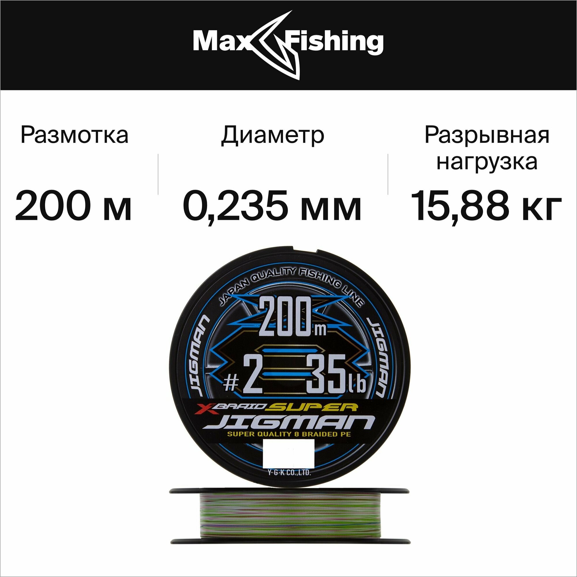 YGK Леска плетеная (шнур) YGK X-Braid SUPER JIGMAN X4 200м (YGK107274 (200 м 0,16мм) 1.0 18lb)