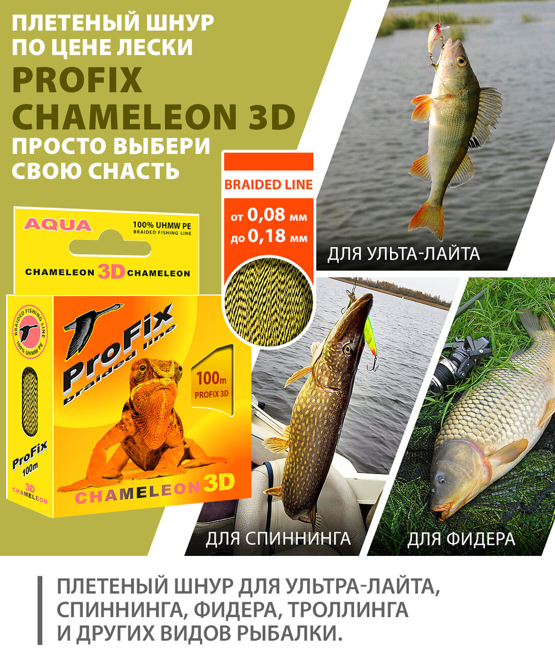 Плетеный шнур AQUA ProFix Chameleon 3D размотка 100 м (0.08, Jungle)