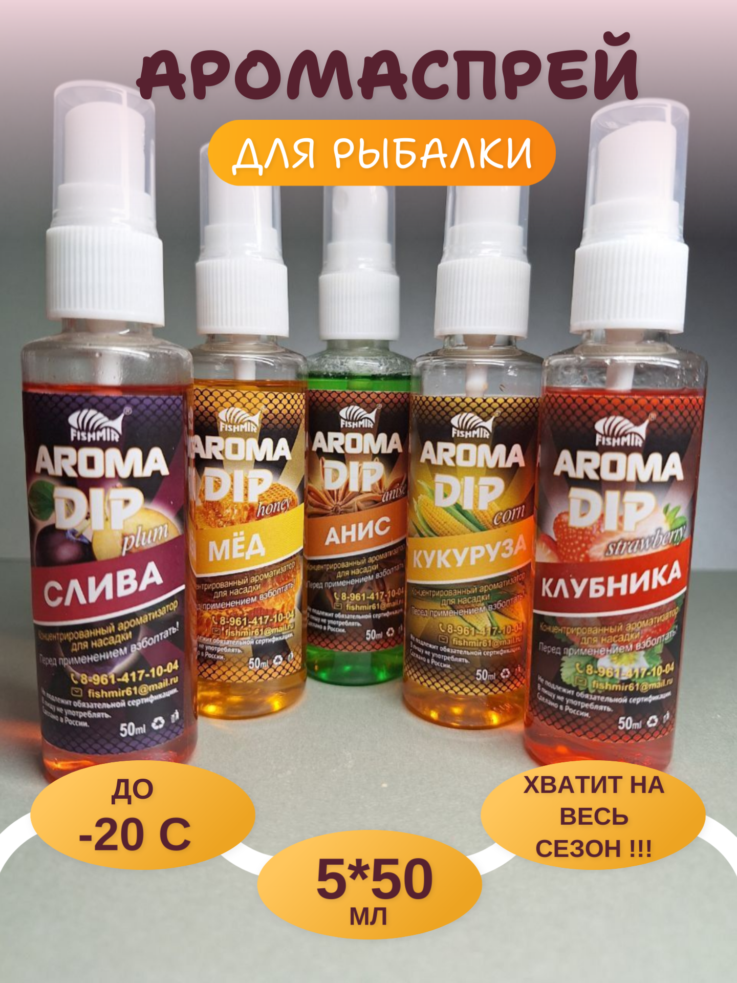 "Мотыль, криль, белая рыба, плотва, рыбец" набор ДИП спреев 5 шт по 50 мл