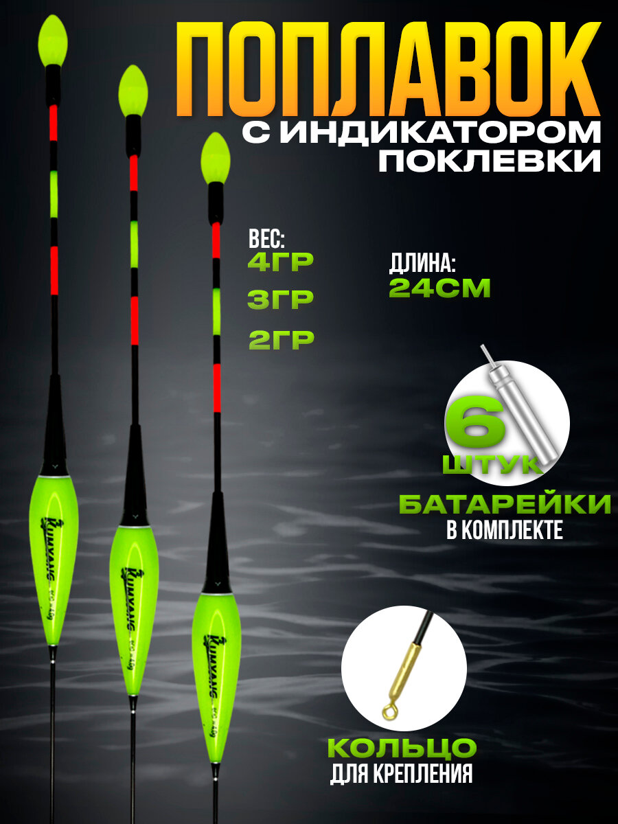 Купить Умный поплавок для рыбалки светящийся с индикатором поклевки 2, 3, 4гр 3шт #1