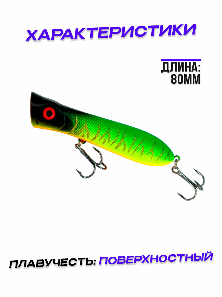 Поппер на щуку для рыбалки приманка поверхностная плавающая #2