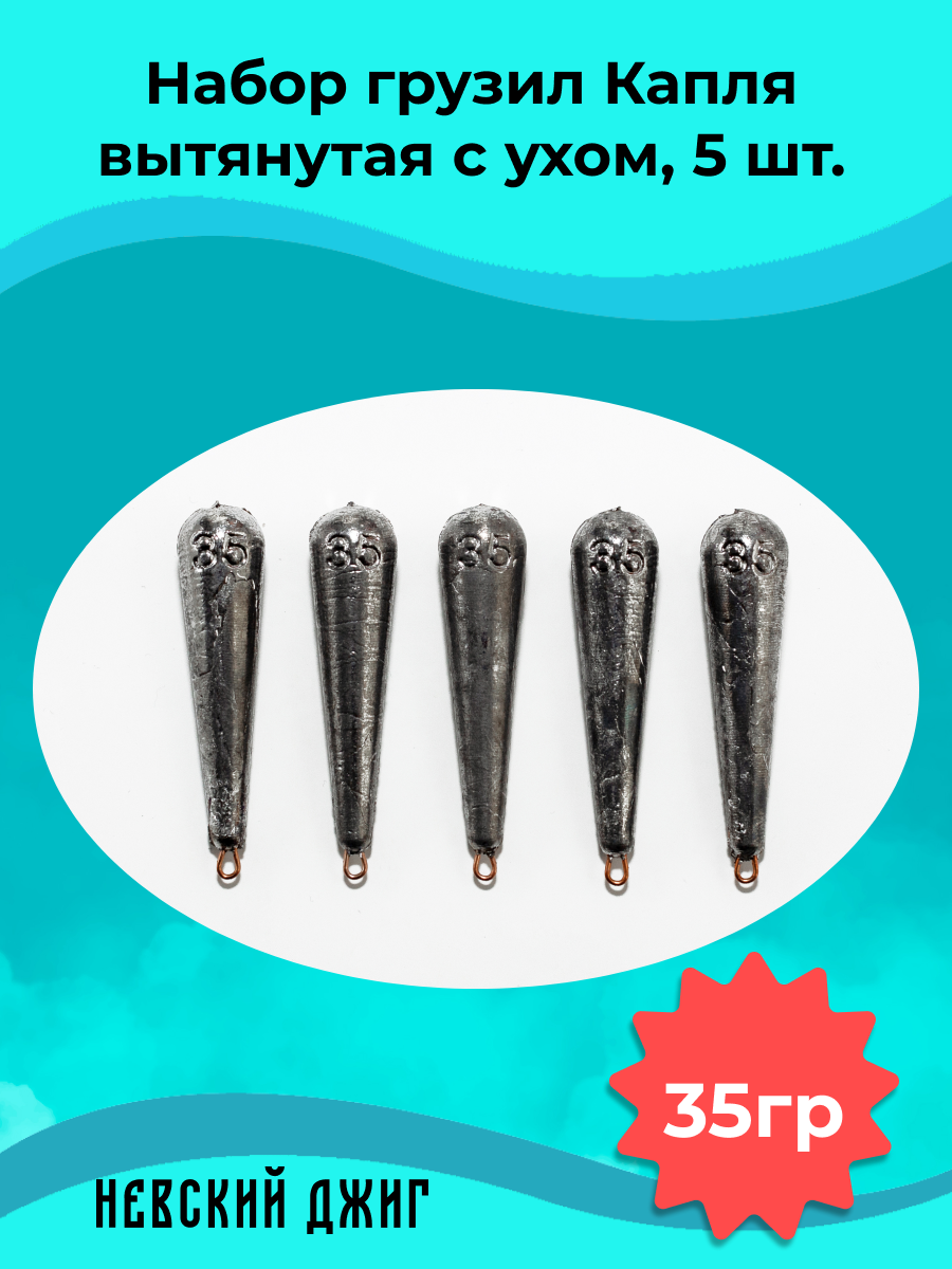 Купить Набор грузил для рыбалки Капля вытянутая с ухом 35 гр (5шт) на отводной поводок Дроп шот
