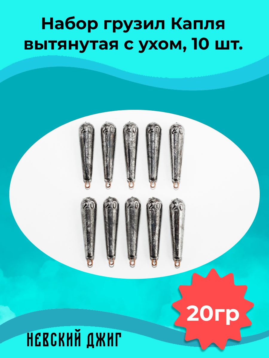 Купить Набор грузил для рыбалки Капля вытянутая с ухом 20 гр (10шт) на отводной поводок Дроп шот