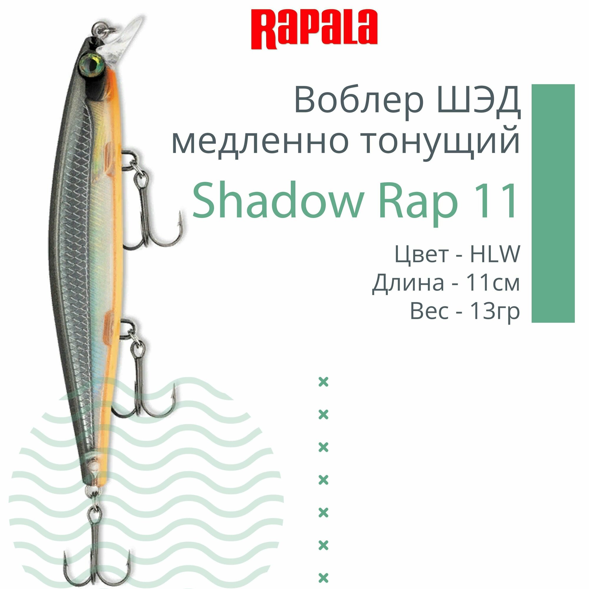 Воблер RAPALA Shadow Rap 11 HLW медленно тонущ. 0,6м-1,2м, 11см, 13гр