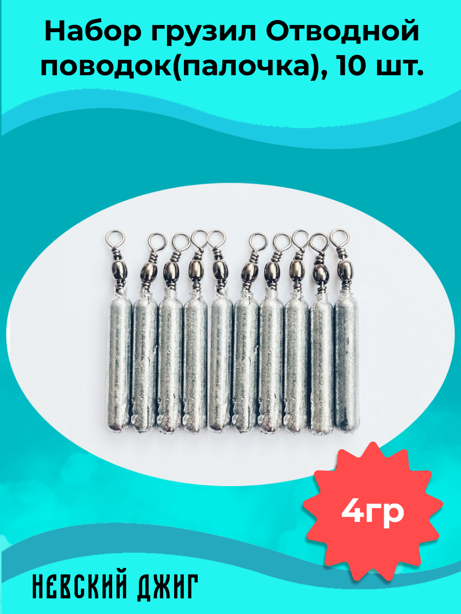 Купить Набор грузил для рыбалки Палочка 4 гр (упаковка 10 штук) на отводной поводок Дроп шот