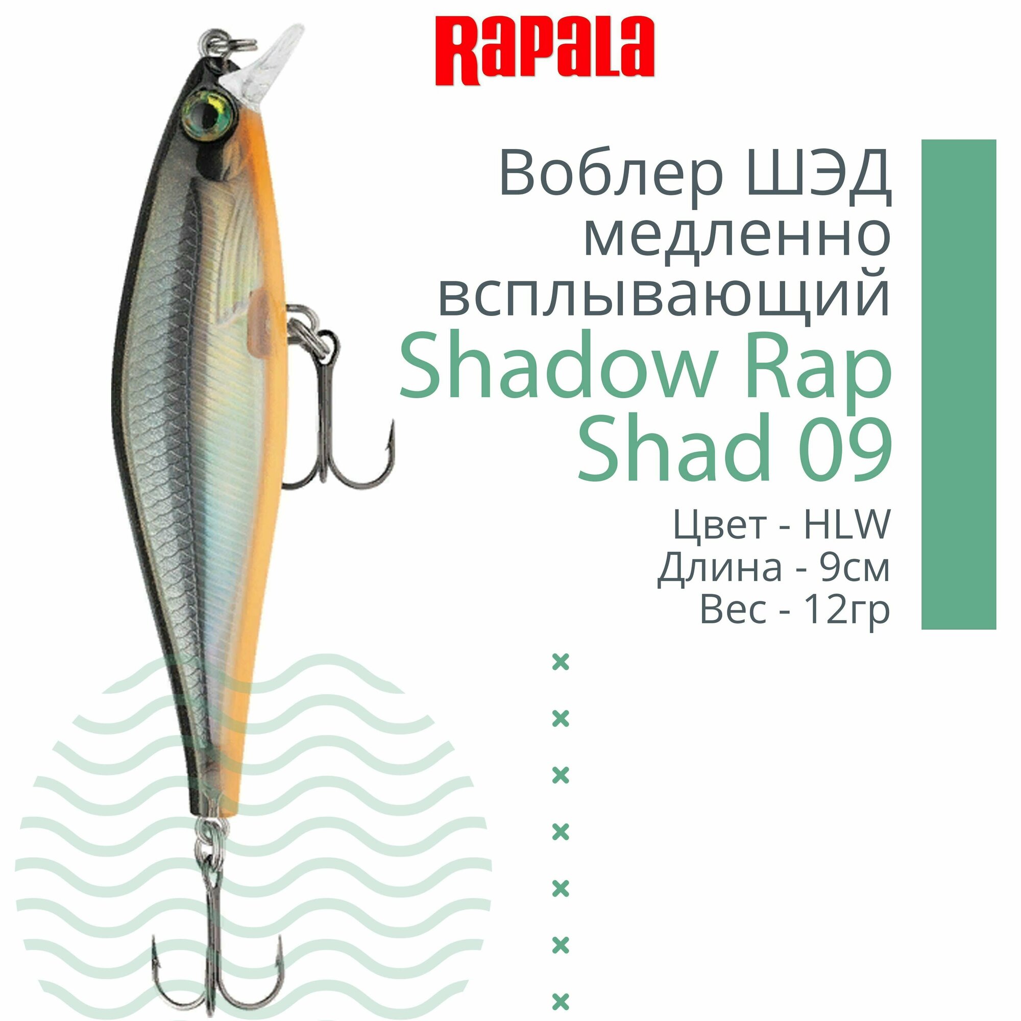 СохранитьВоблер для рыбалки RAPALA Shadow Rap Shad 09, 9см, 12гр, цвет HLW, медленно всплывающий интересное:
