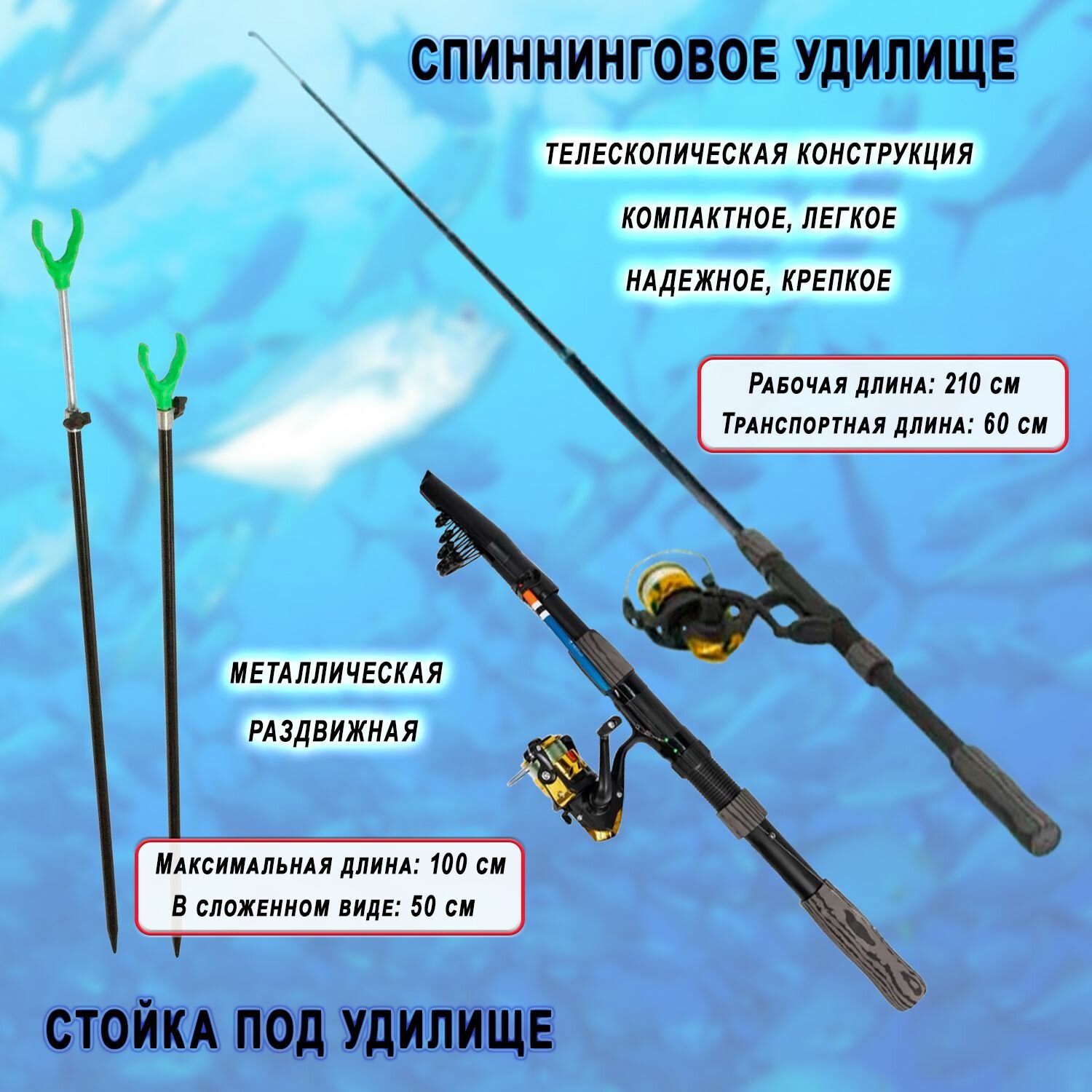 СохранитьНабор 10XL Два спиннинга для рыбалки в сборе оснащенные 2,1 м / телескопические с катушкой / летняя удочка с чехлом интересное:
