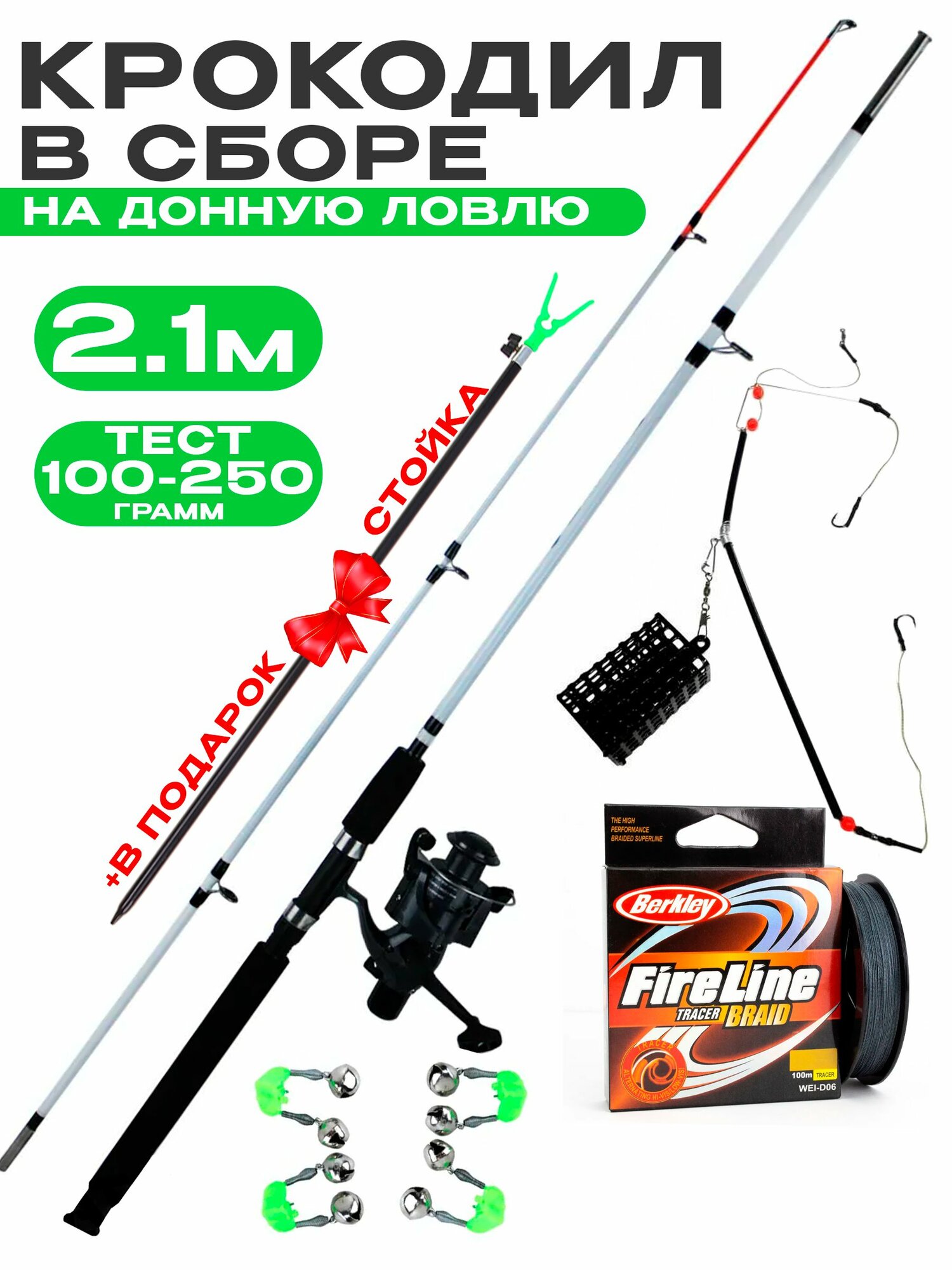 Купить Спиннинг для рыбалки 210 см донный с катушкой и оснасткой Тест 100-250 грамм