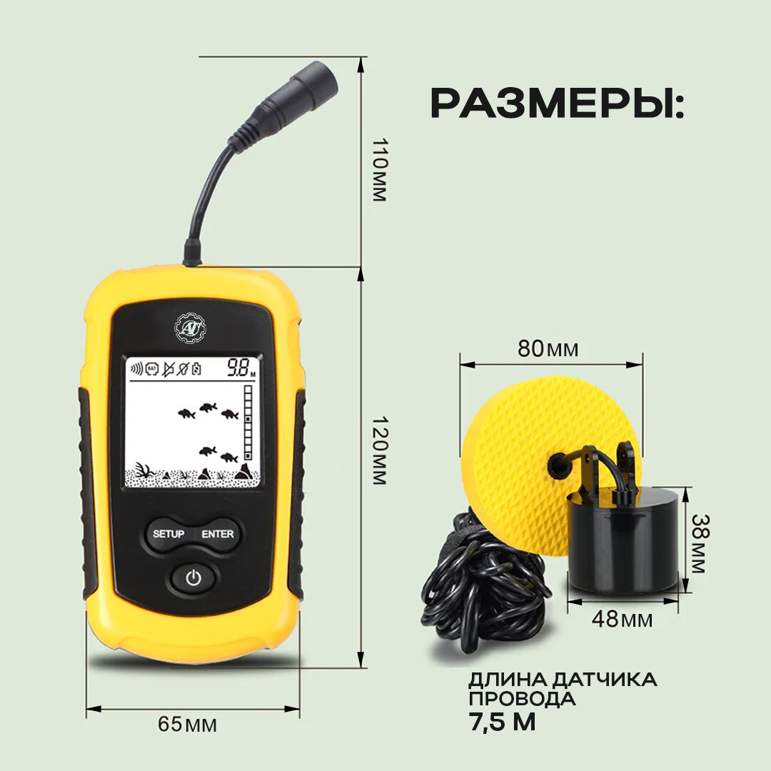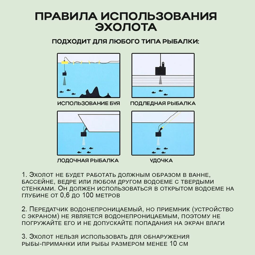 Эхолот для рыбалки с лодки и берега портативный - глубина до 100 метров, работает зимой и летом, найдет рыбу за 3 секунды. интересное: