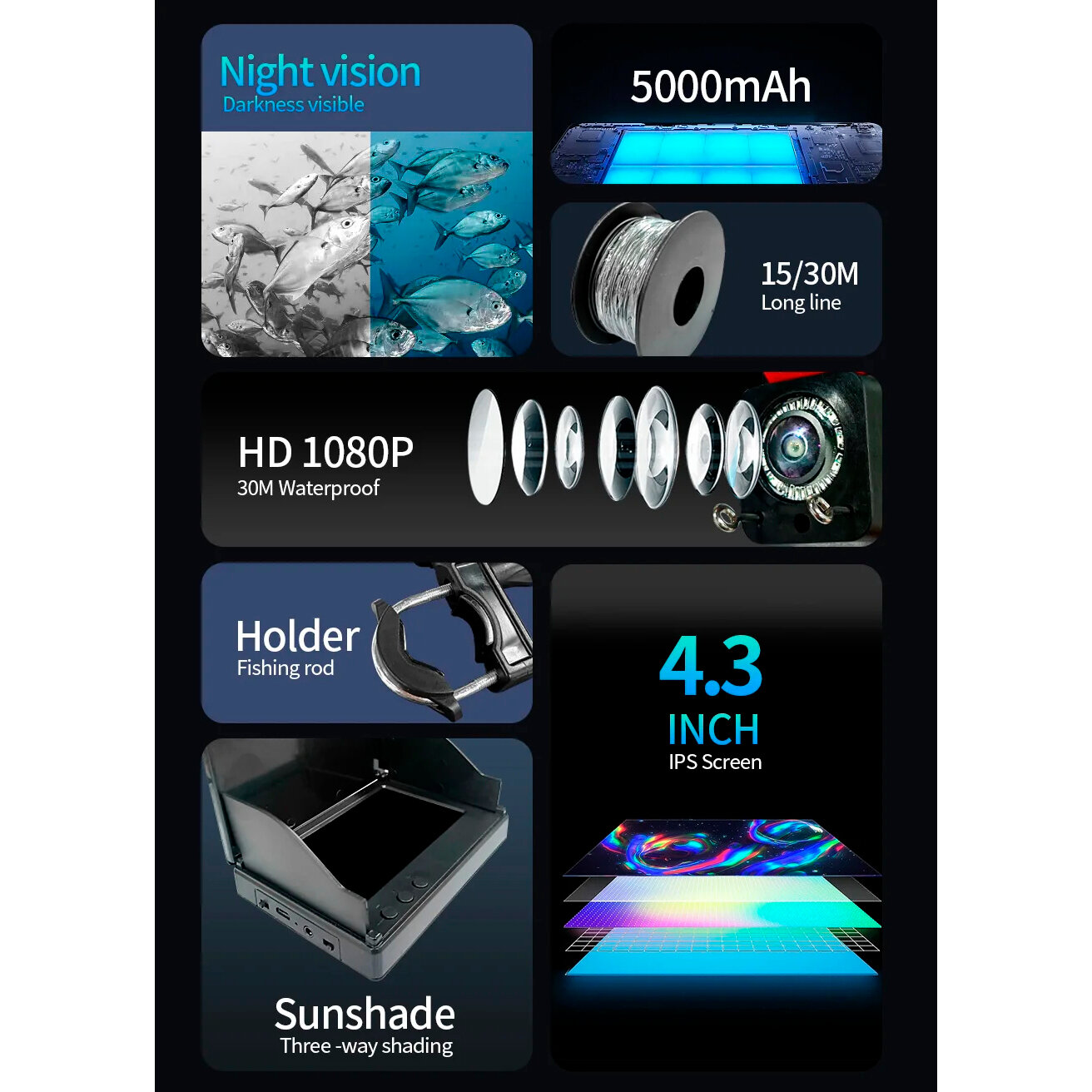 Визуальный эхолот аккумуляторный / Подводная камера для рыбалки 4,3-дюймовым ЖК-экраном