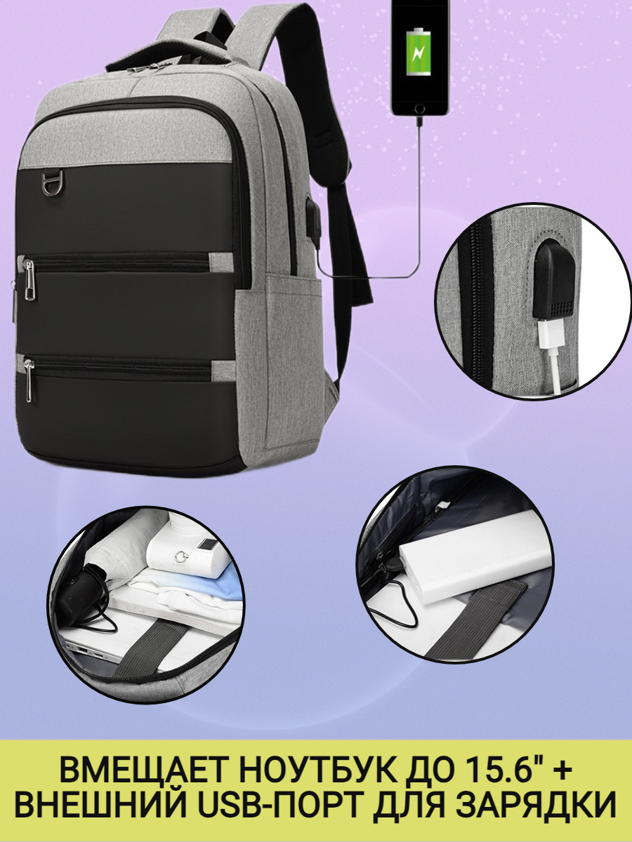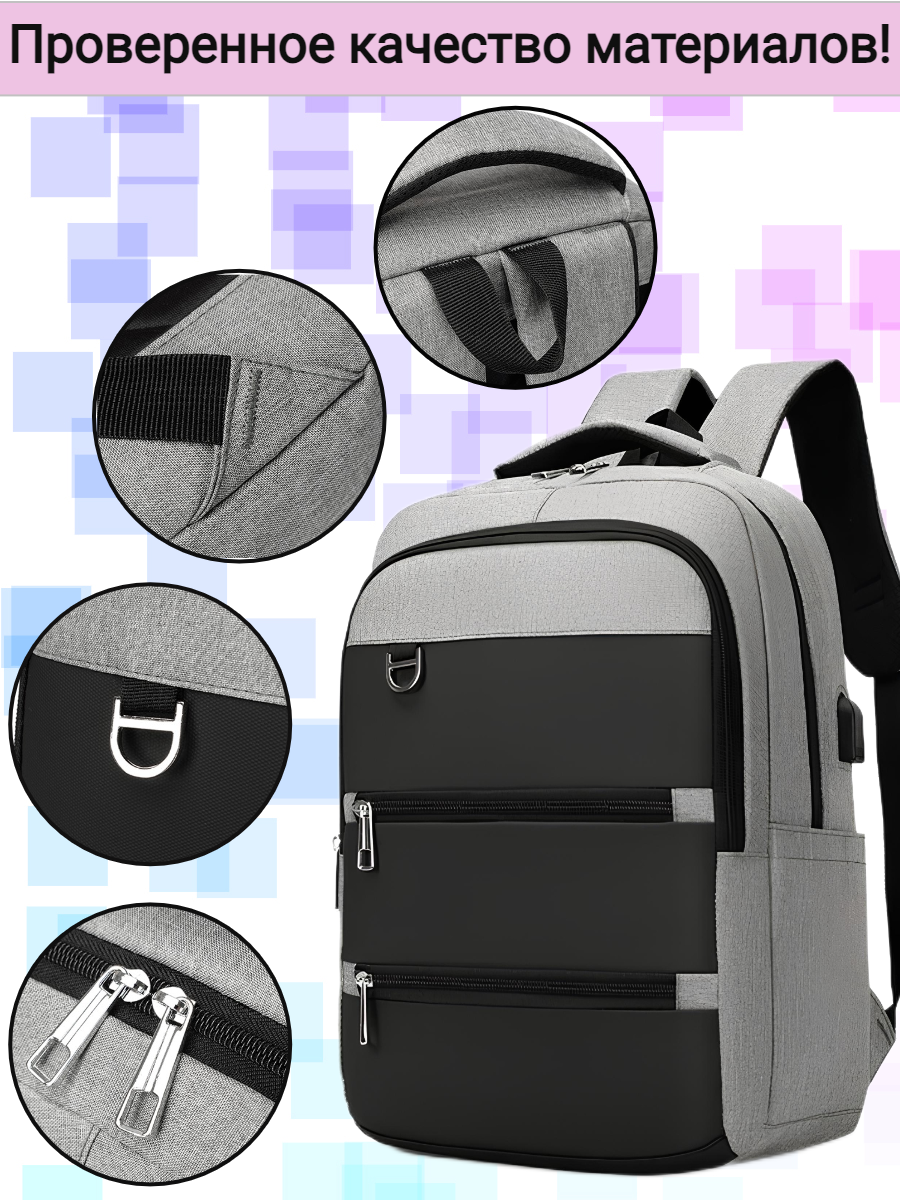 Рюкзак из водоотталкивающего материала с USB-портом (серый/черный)