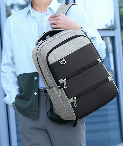 Купить Рюкзак из водоотталкивающего материала с USB-портом (серый/черный)