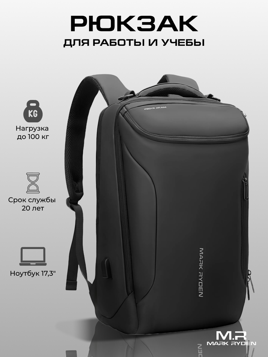 СохранитьРюкзак мужской городской дорожный большой 28л для ноутбука 17.3" Mark Ryden MR9031YSJ Черный влагостойкий текстильный с USB портом молодежный интересное: