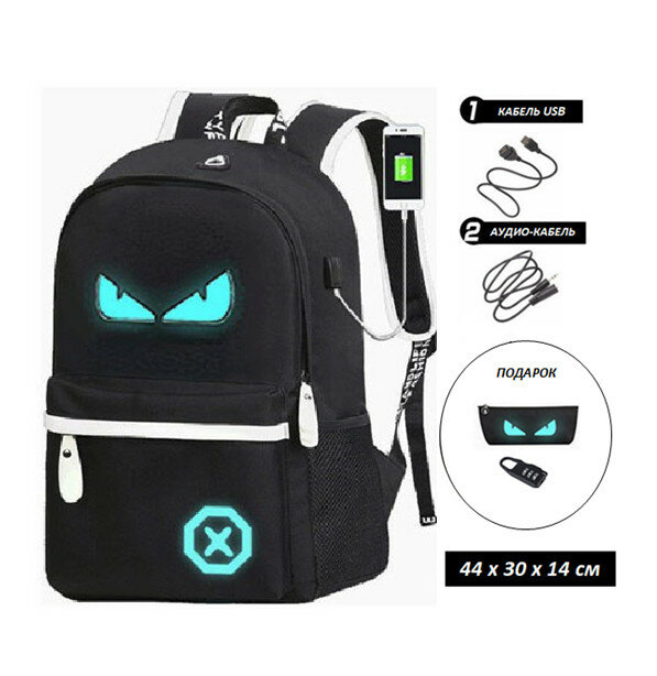 Рюкзак светящийся в темноте с USB и аудио-портом Devil, для ноутбука, для школы большой городской интересное: