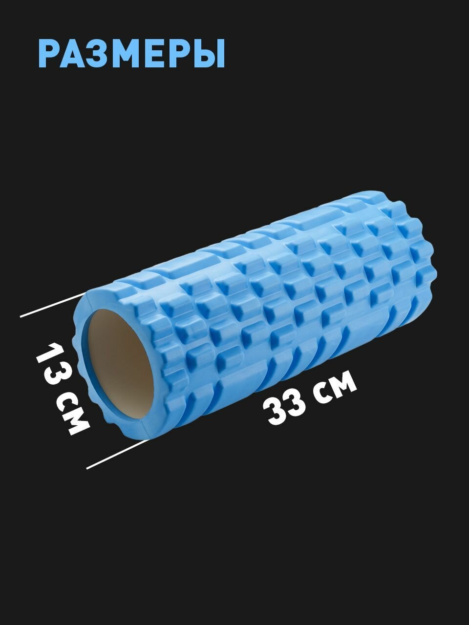 Ролик массажный Shark Fit, валик для спины мфр, 33 см, синий