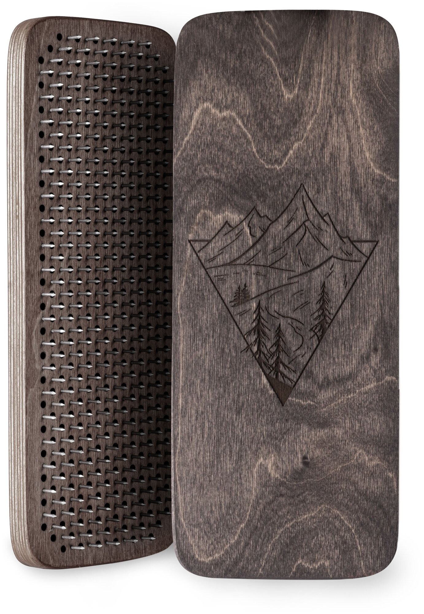 Доска Садху / Доска с гвоздями / Доска для йоги / Горы / коричневый / шаг 8 мм