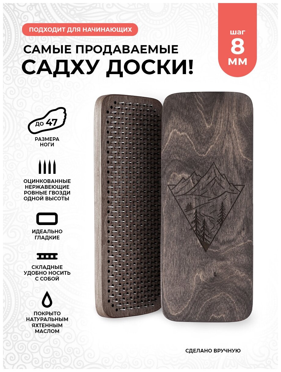 СохранитьДоска Садху / Доска с гвоздями / Доска для йоги / Горы / Черный / шаг 8 мм интересное: