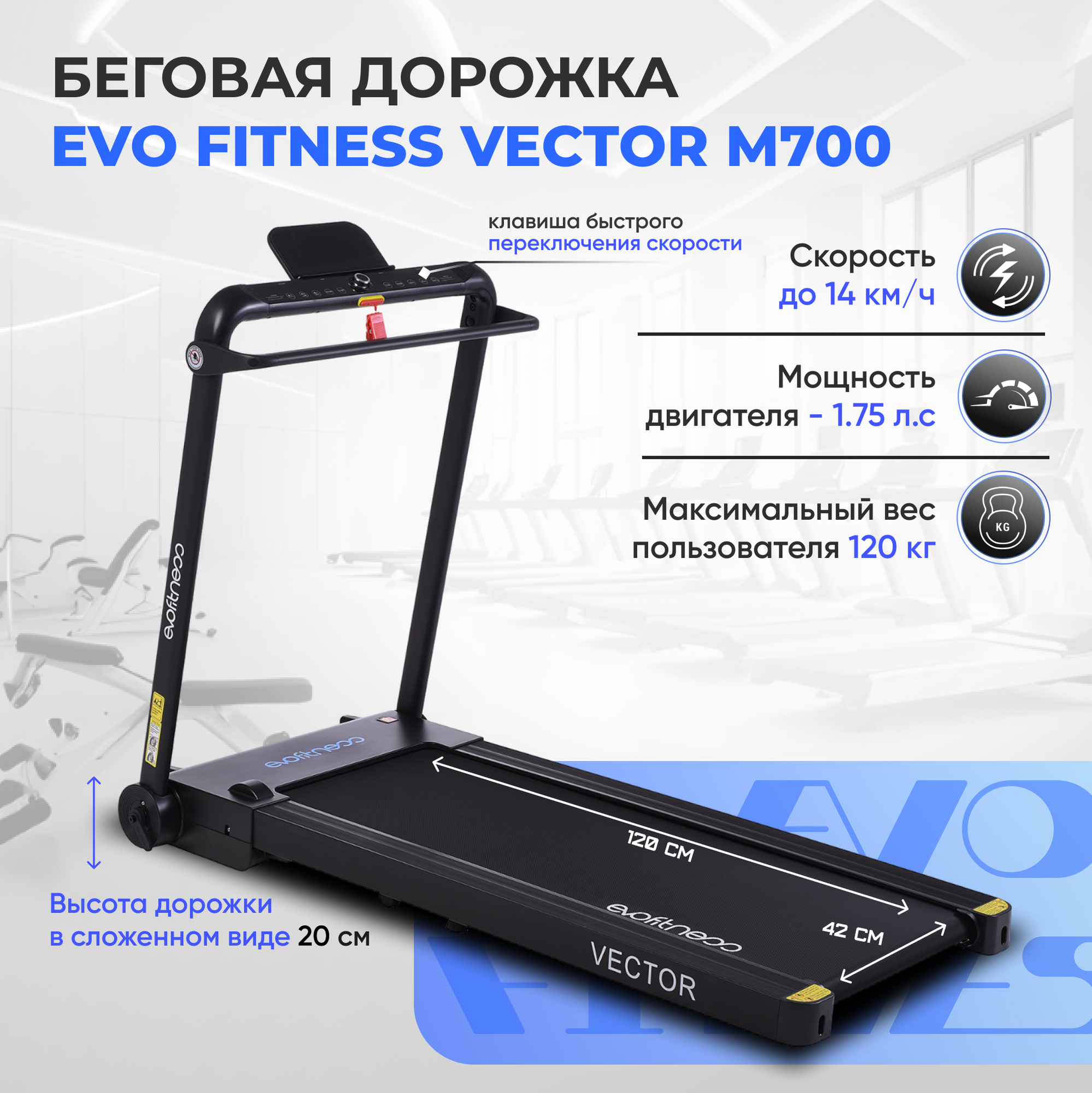 Беговая дорожка EVO FITNESS Vector М700 black интересное: