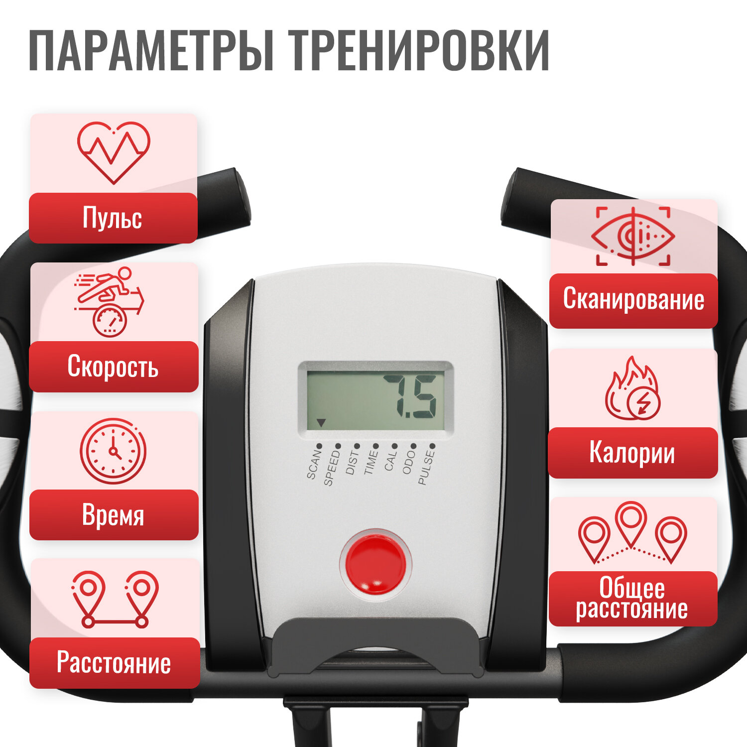 | Показания дисплея | одометр / пройденное расстояние / пульс / расход калорий / скан / текущая скорость |