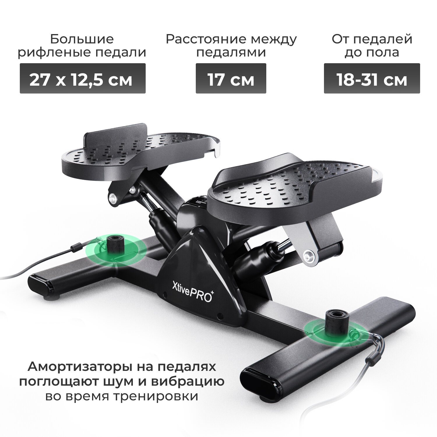 | Дополнительная информация | Высота педалей от 18 до 31 см Размер педалей 27 x 12,5 см Регулировка высоты эспандеров 15,5-21 см Расстояние между педалями 17 см |