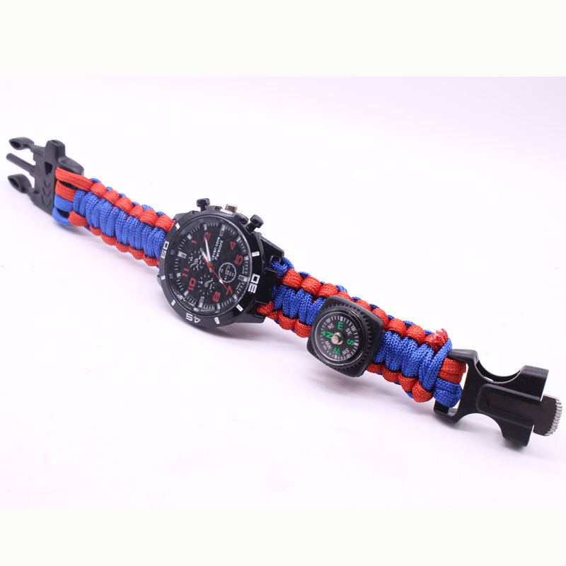 Браслет для выживания 4в1(паракорд, компас,свисток,огниво),многоцветный, 25.5 × 2.5 см,микс