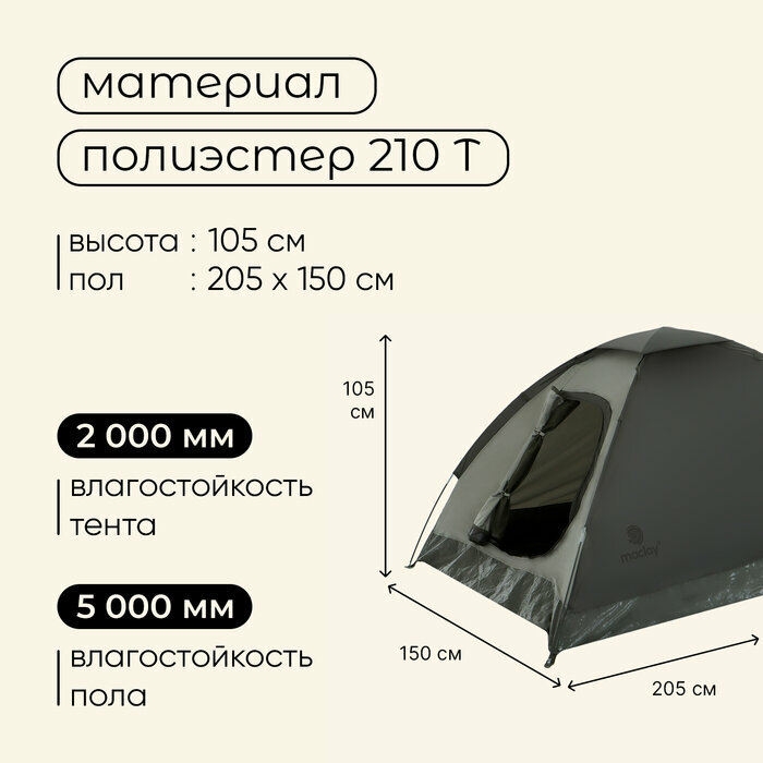 Палатка треккинговая Terskol 2 размер 205 х 150 х 105 см, 2-х местная Maclay 10254034 .