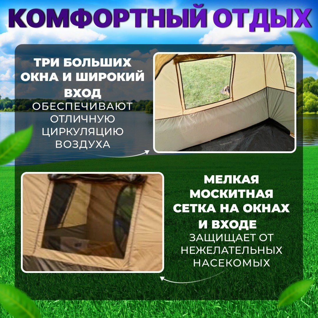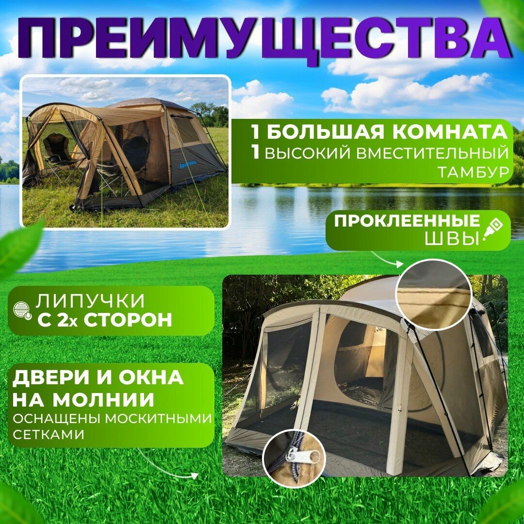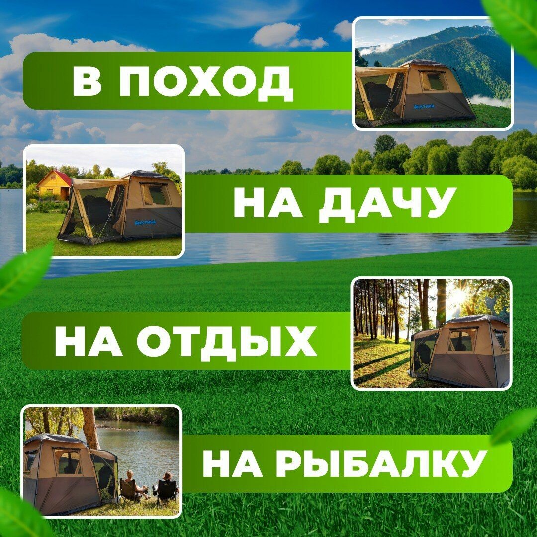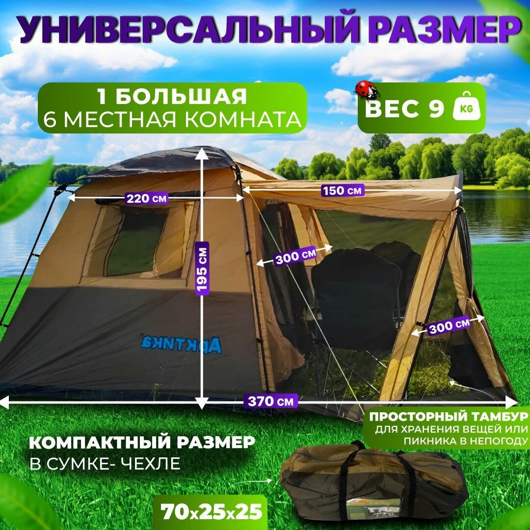 СохранитьПалатка туристическая 6 местная с тамбуром двухслойная, палатка шатер пляжная с москитной сеткой для кемпинга, туризма и рыбалки интересное: