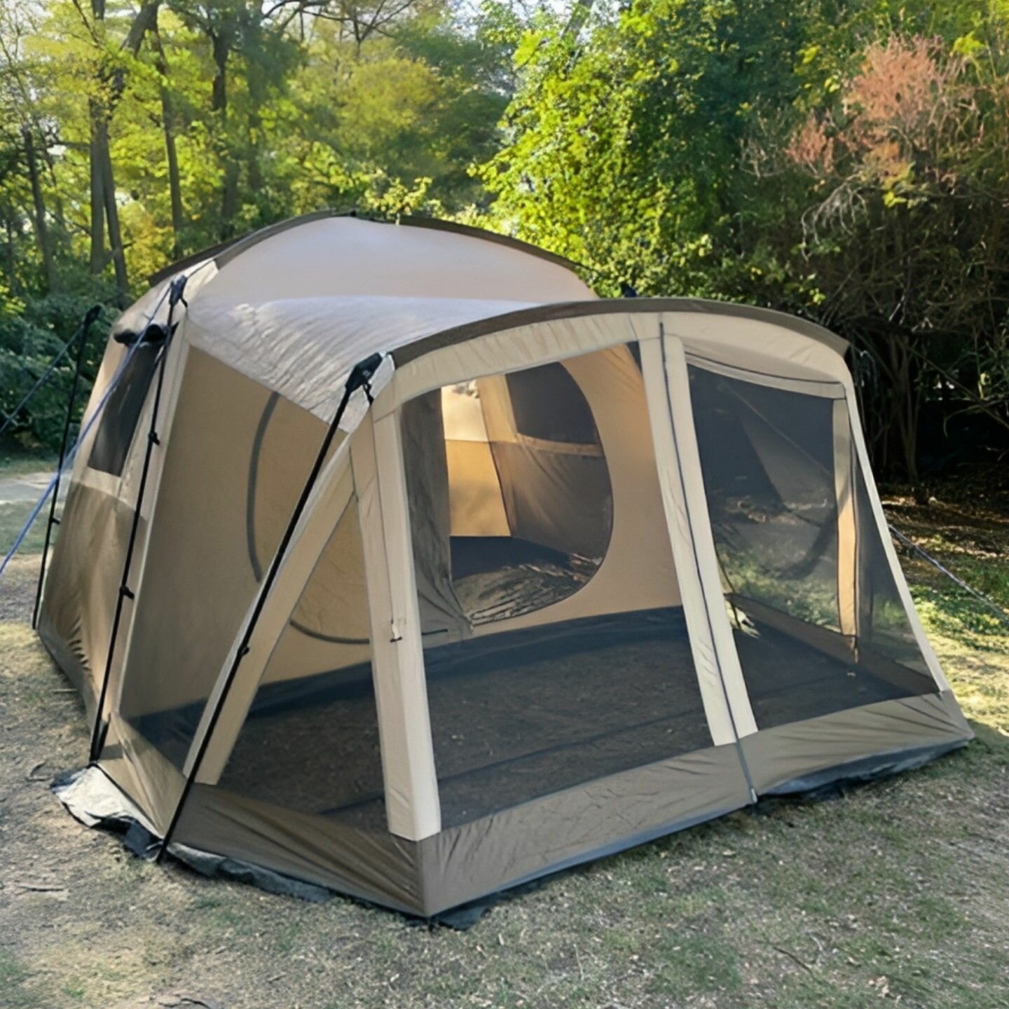 Палатка туристическая 4 местная двухслойная с навесом, палатка с тамбуром пляжная с москитной сеткой для кемпинга, туризма и рыбалки