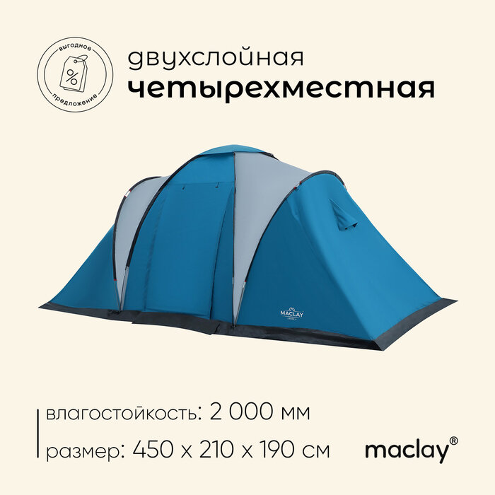 Купить Палатка кемпинговая Maclay LIRAGE 4, р. 450х210х190 см, 4-местная (арт. 9257704)