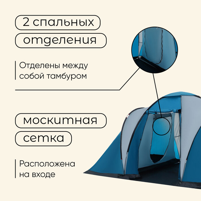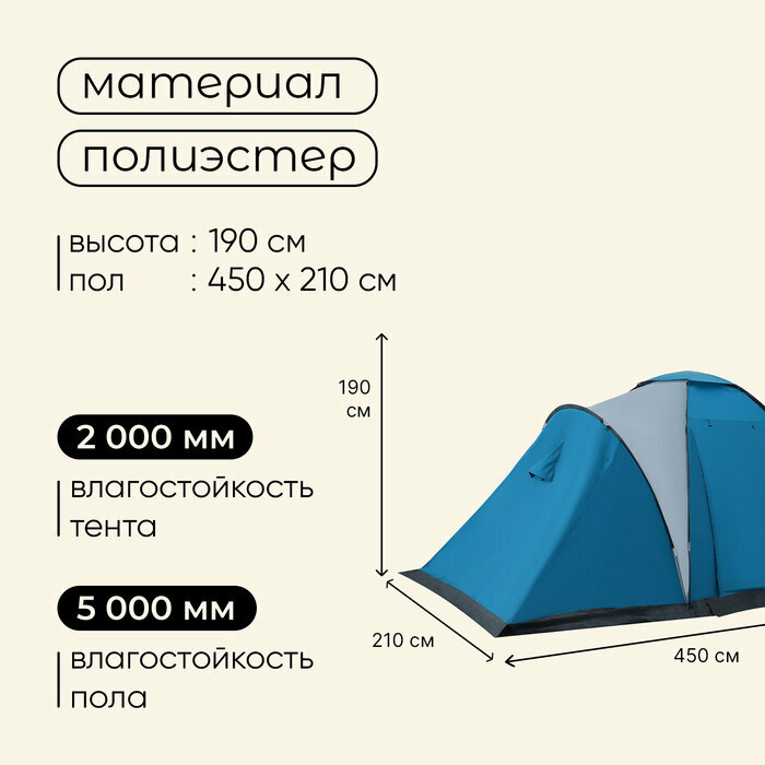Палатка кемпинговая Maclay LIRAGE 4, р. 450х210х190 см, 4-местная (арт. 9257704) интересное: