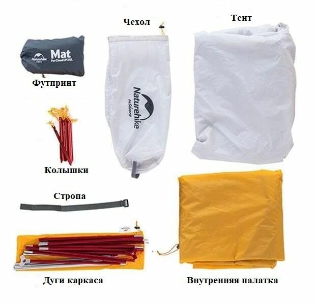 Палатка туристическая / Naturehike Cloud Up 2 Superlight Professional Grey/Yellow / палатка для туризма, треккинга, кемпинга интересное: