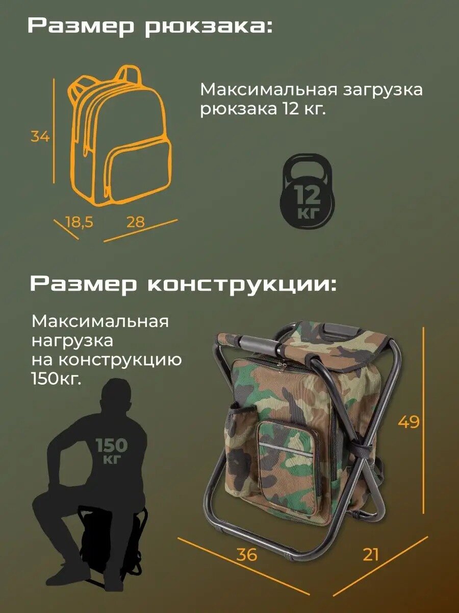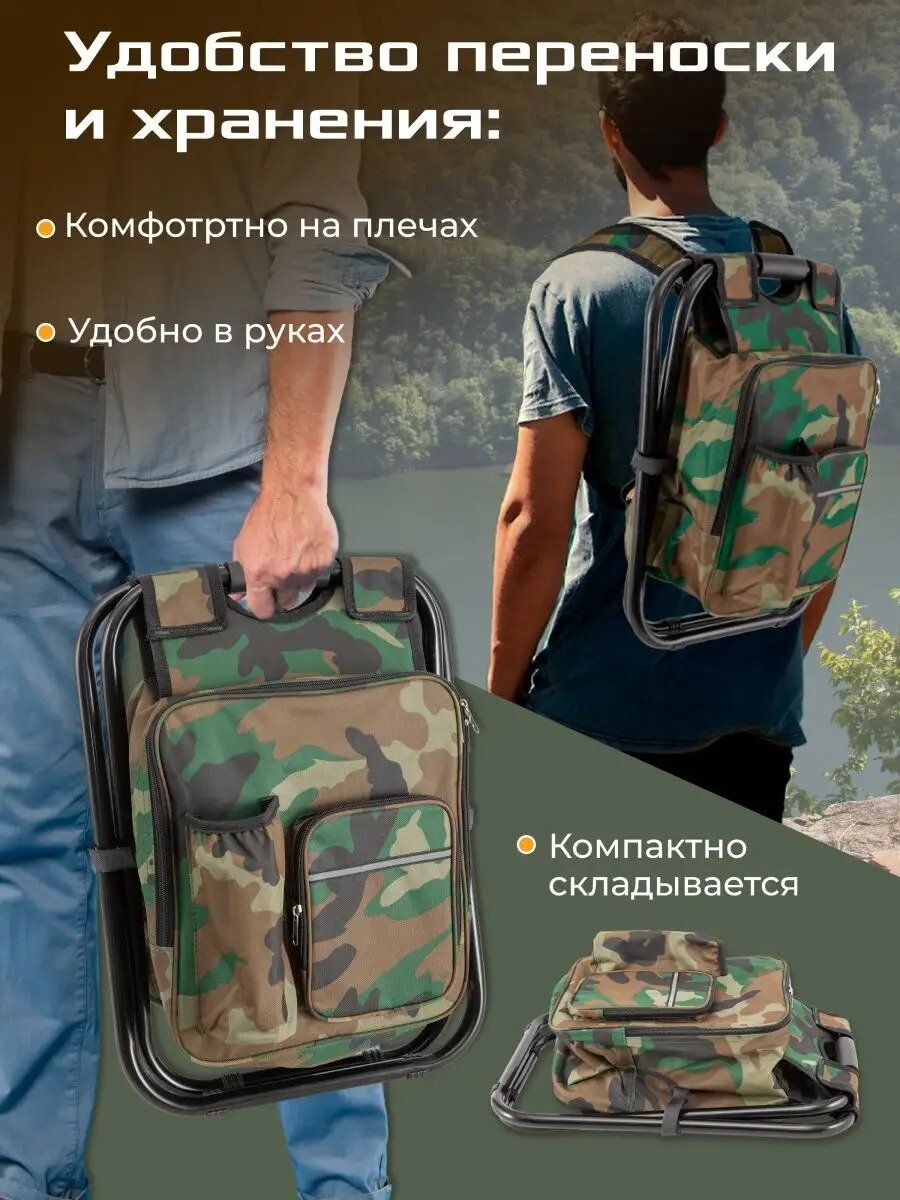 Рюкзак со стулом для рыбалки и охоты, стул складной туристический для отдыха, рыболовный стул-рюкзак, походный, камуфляж, хаки интересное: