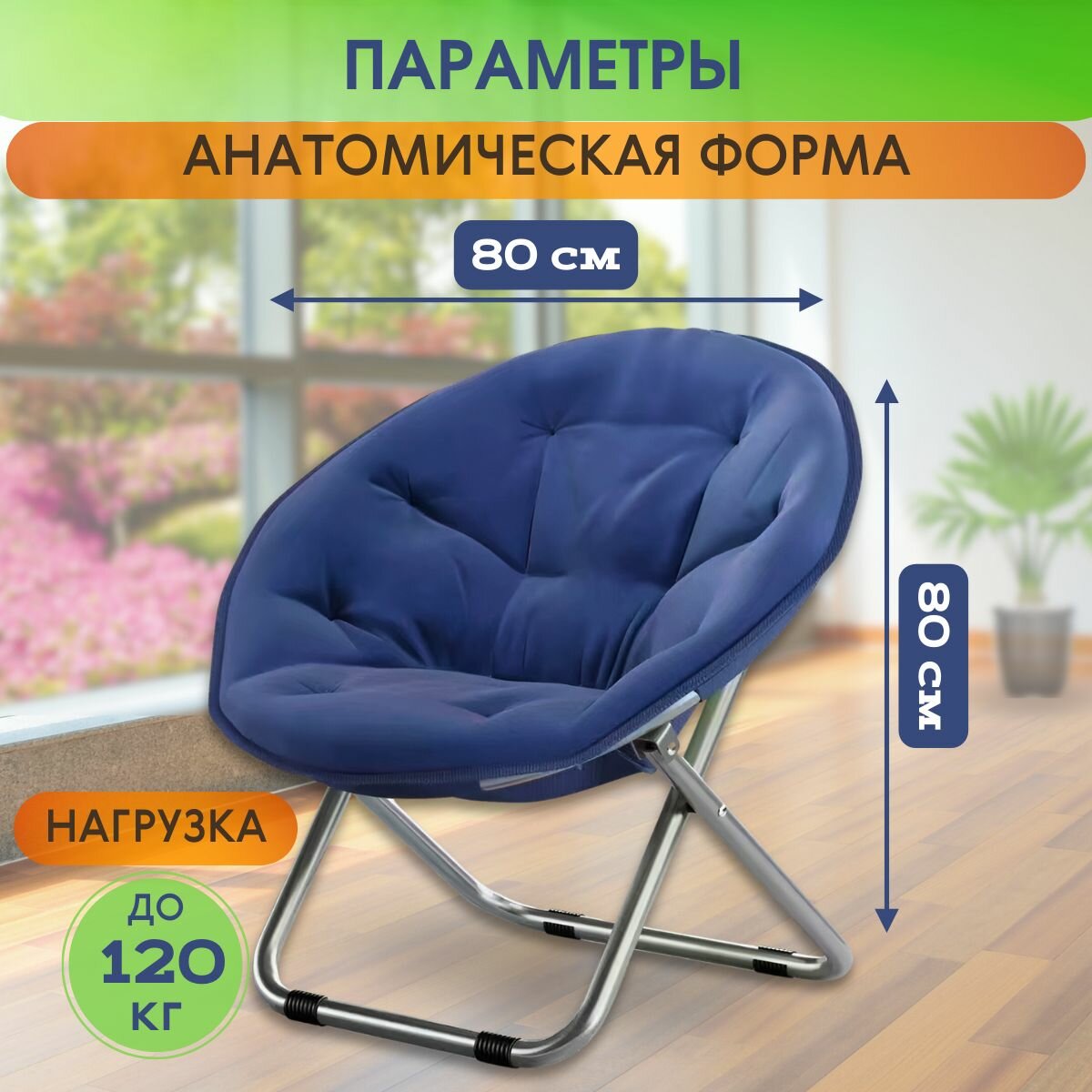 Купить кресло складное туристическое синее, на дачу, на пляж, на пикник, на балкон, кресло-шезлонг, до 120 кг., уютное и большое